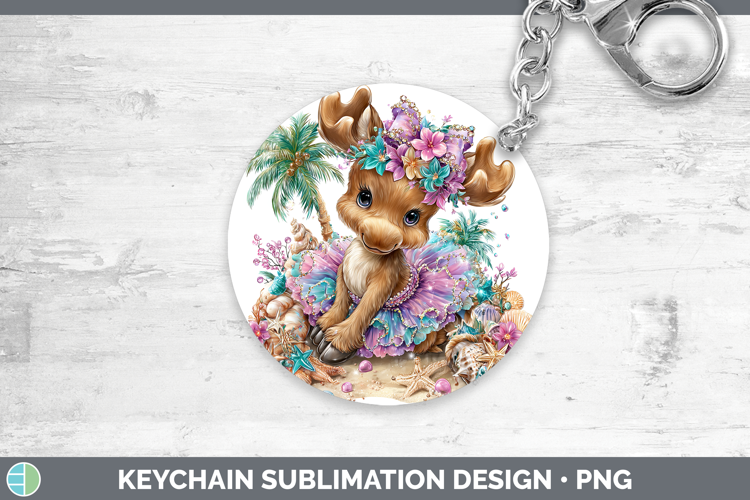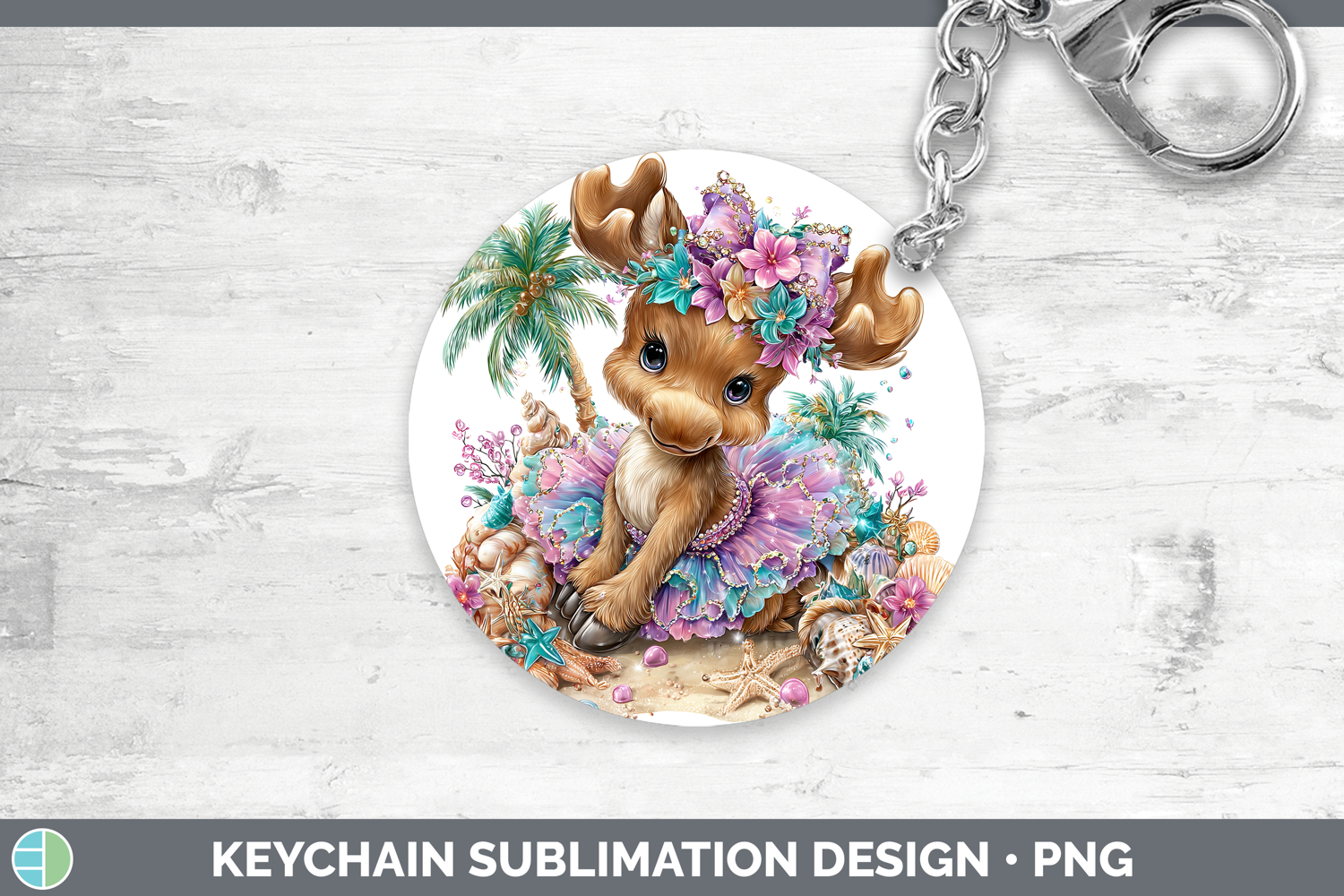 Woodland Summer Beach Moose Keychain Sublimation Keyring Des