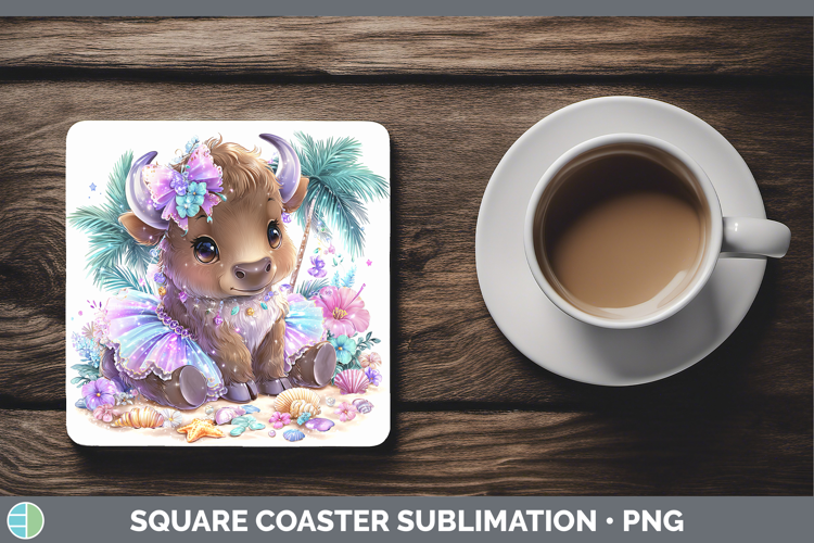 Woodland Summer Beach Musk Ox Square Coaster Sublimation Coa
