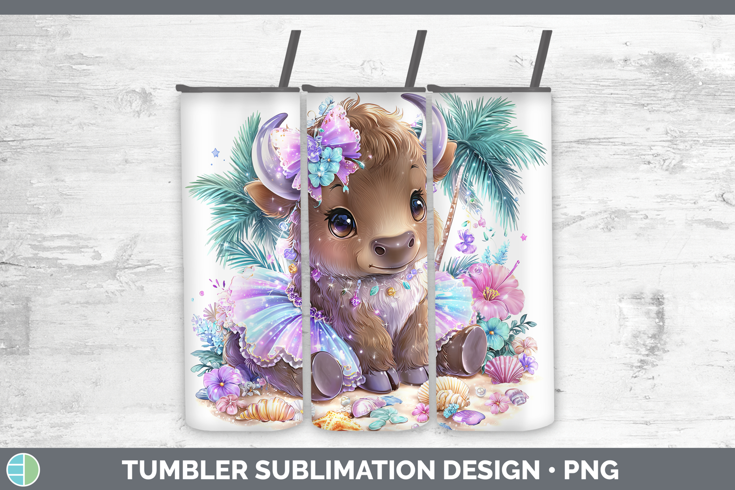 Woodland Summer Beach Musk Ox Tumbler Sublimation 20 oz Skin
