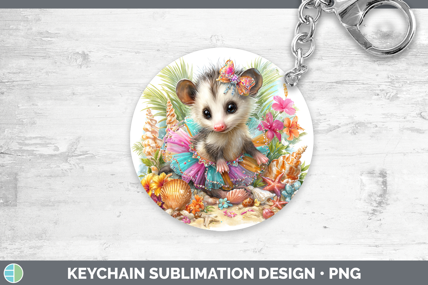 Woodland Summer Beach Opossum Keychain Sublimation Keyring D