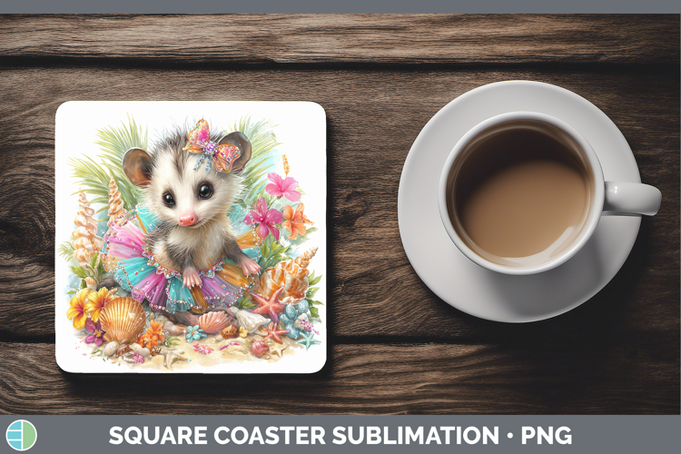 Similar Design Products to Woodland Summer Beach Opossum Square Coaster Sublimation Coa