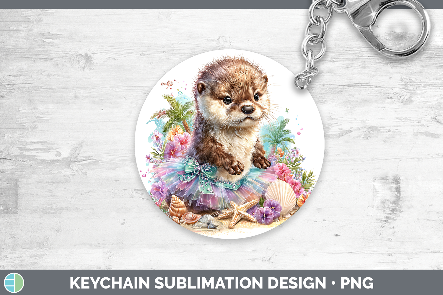 Woodland Summer Beach Otter Keychain Sublimation Keyring Des