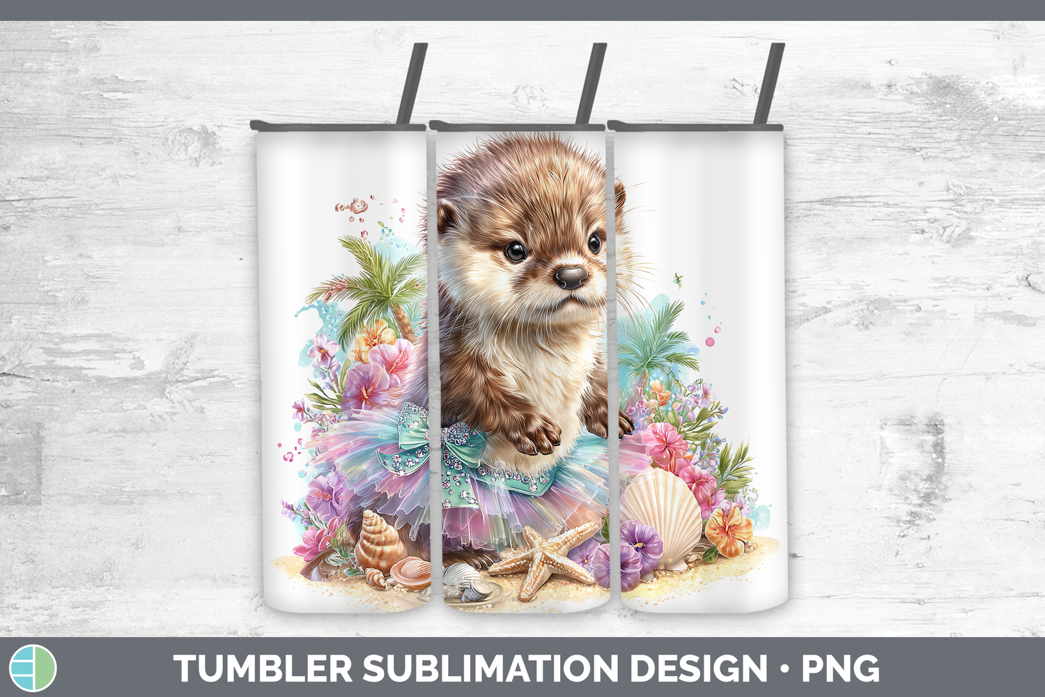 Woodland Summer Beach Otter Tumbler Sublimation 20 oz Skinny