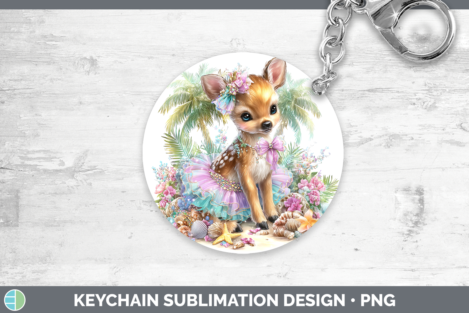 Similar Design Products to Woodland Summer Beach Reindeer Keychain Sublimation Keyring