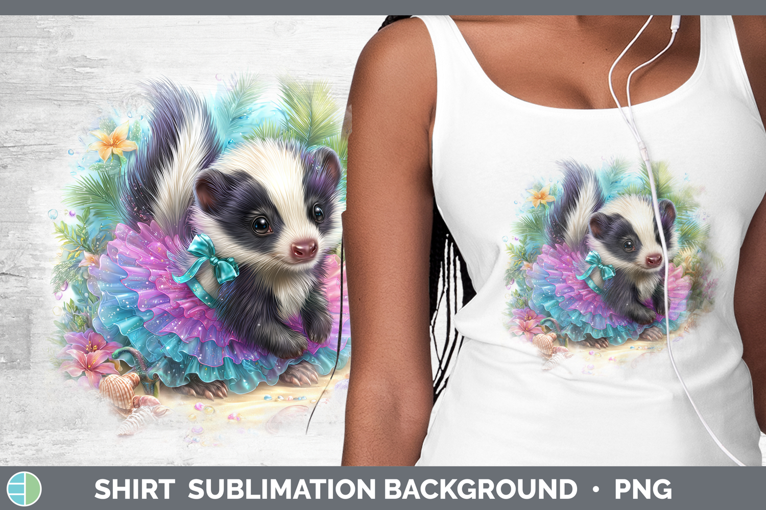 Woodland Summer Beach Skunk Shirt Sublimation Background Des