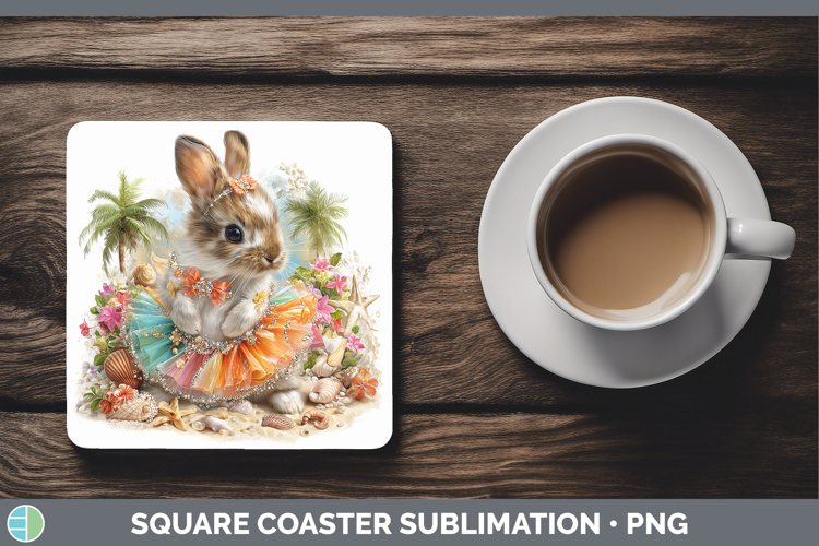 Woodland Summer Beach Snowshoe Hare Square Coaster Sublimati