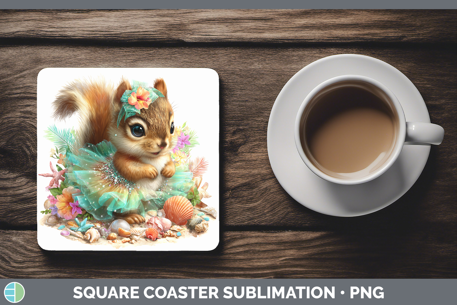 Woodland Summer Beach Squirrel Square Coaster Sublimation Co