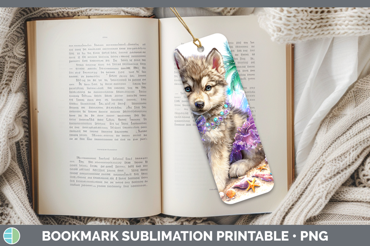 Woodland Summer Beach Wolf Bookmark Sublimation Printable De
