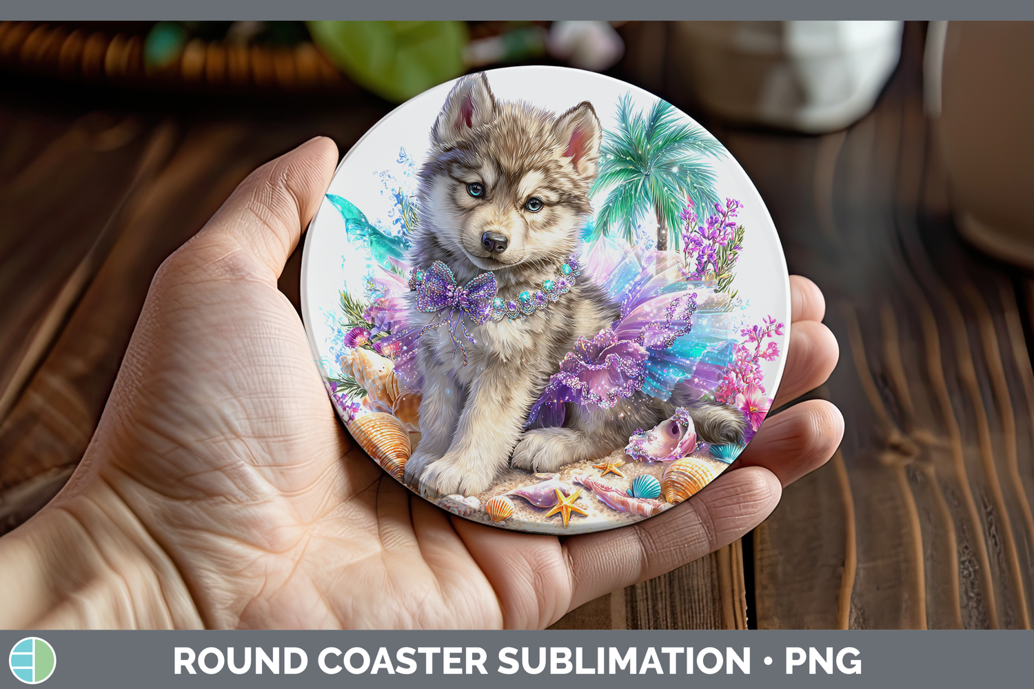 Similar Design Products to Woodland Summer Beach Wolf Round Coaster Sublimation Coaster