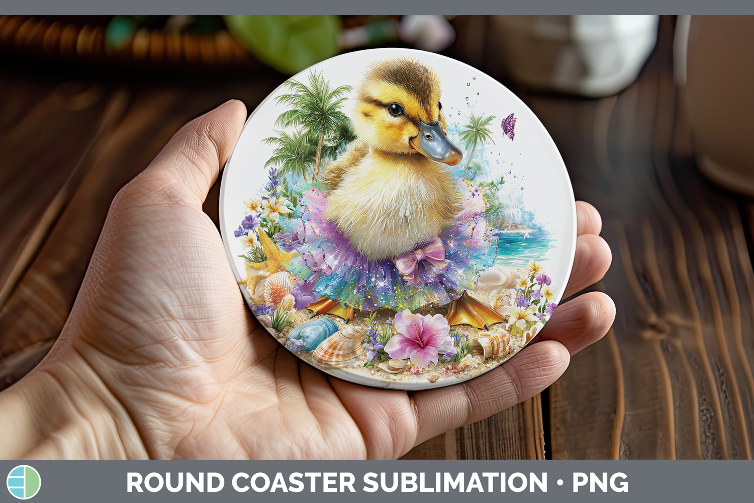 Woodland Summer Beach Duck Round Coaster Sublimation Coaster