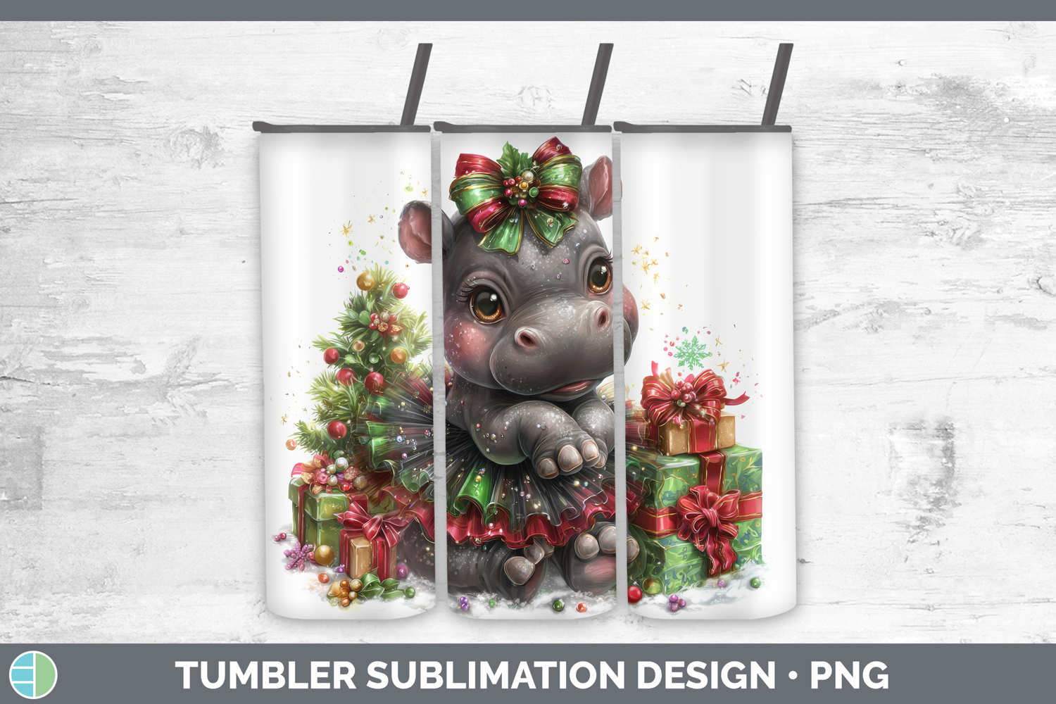 Safari Cute Christmas Hippo Tumbler Sublimation 20 oz Skinny