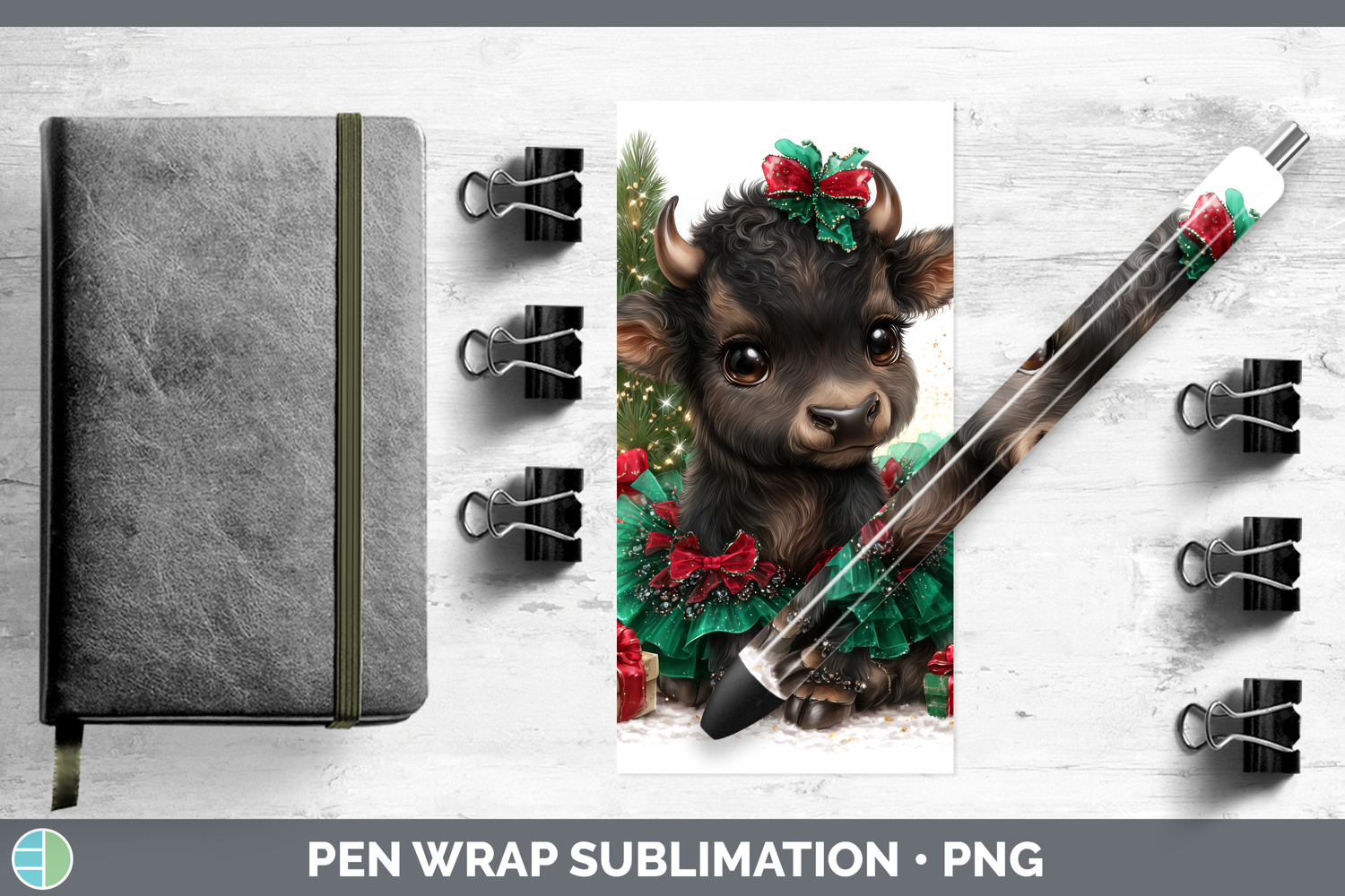 Safari Cute Christmas Buffalo Pen Wrap Sublimation Pen Desig