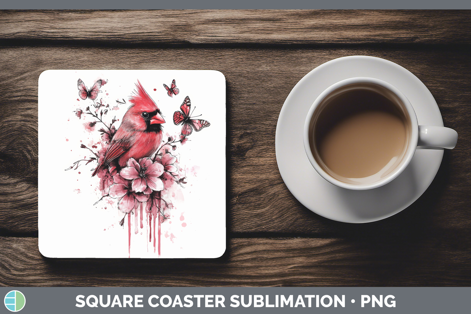 Animals Pink Drips Cardinal Square Coaster Sublimation Coast