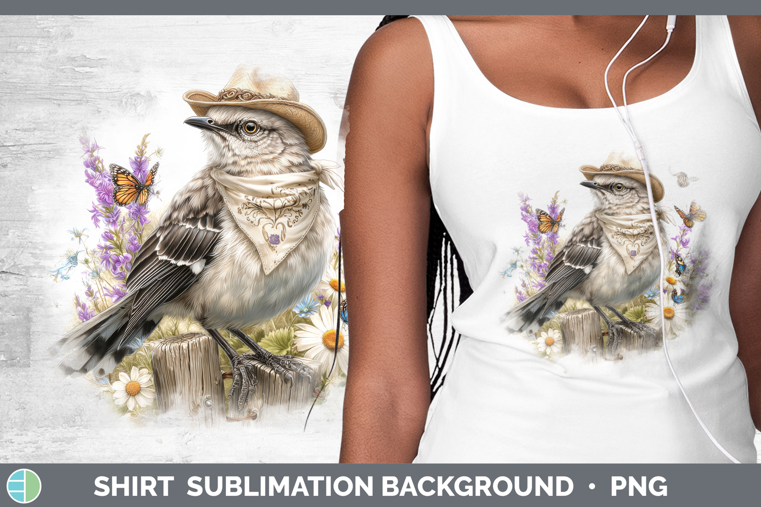 Birds 01 Bandana Summer Mockingbird Shirt Sublimation Backgr