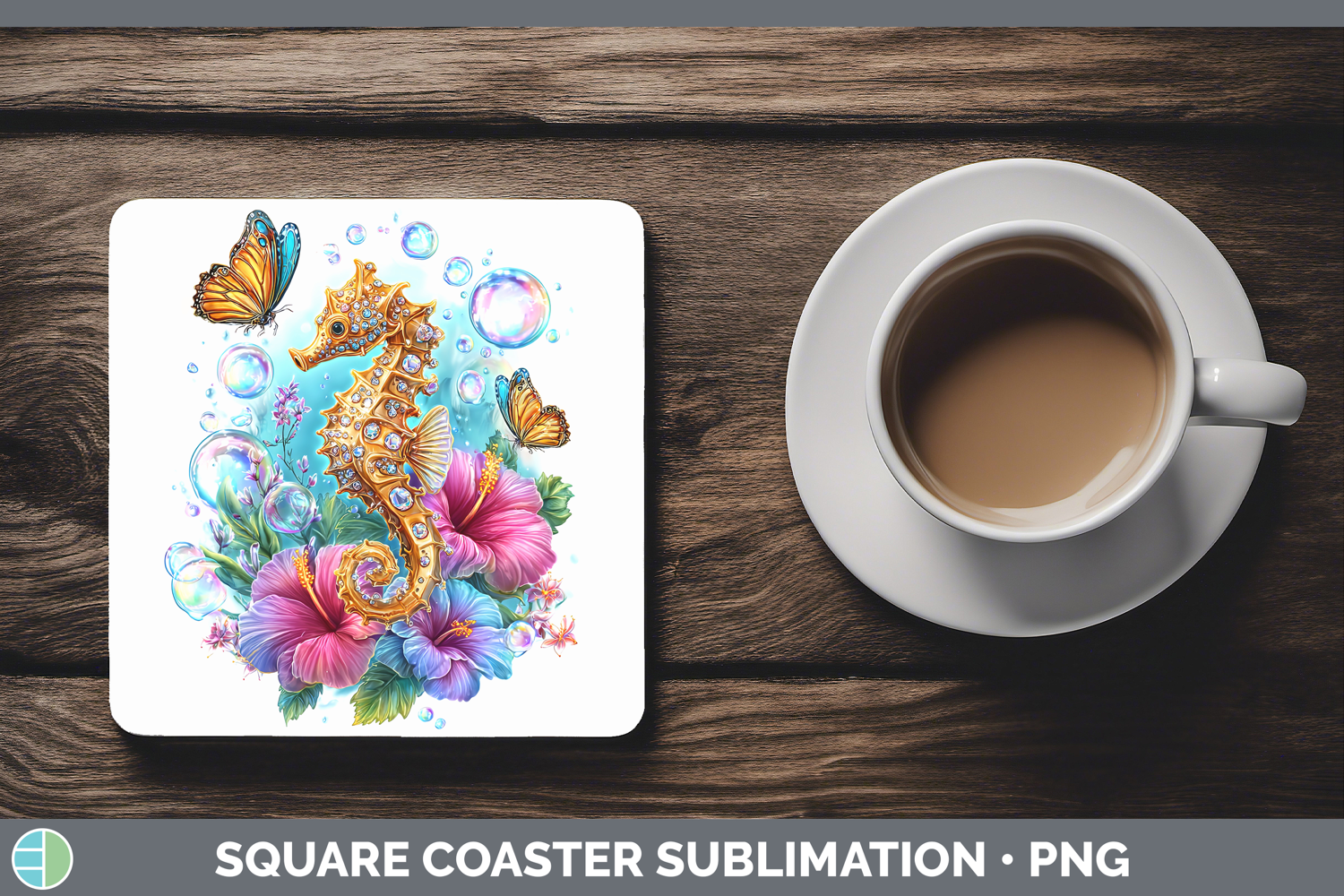 Best Sellers 04 Rainbow Summer Seahorse Square Coaster Subli