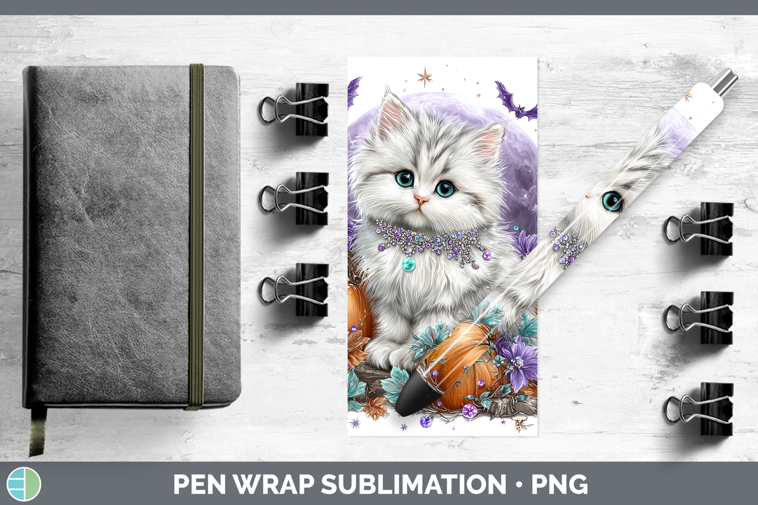 Best Sellers 03 Cute Halloween White Cat Pen Wrap Sublimatio