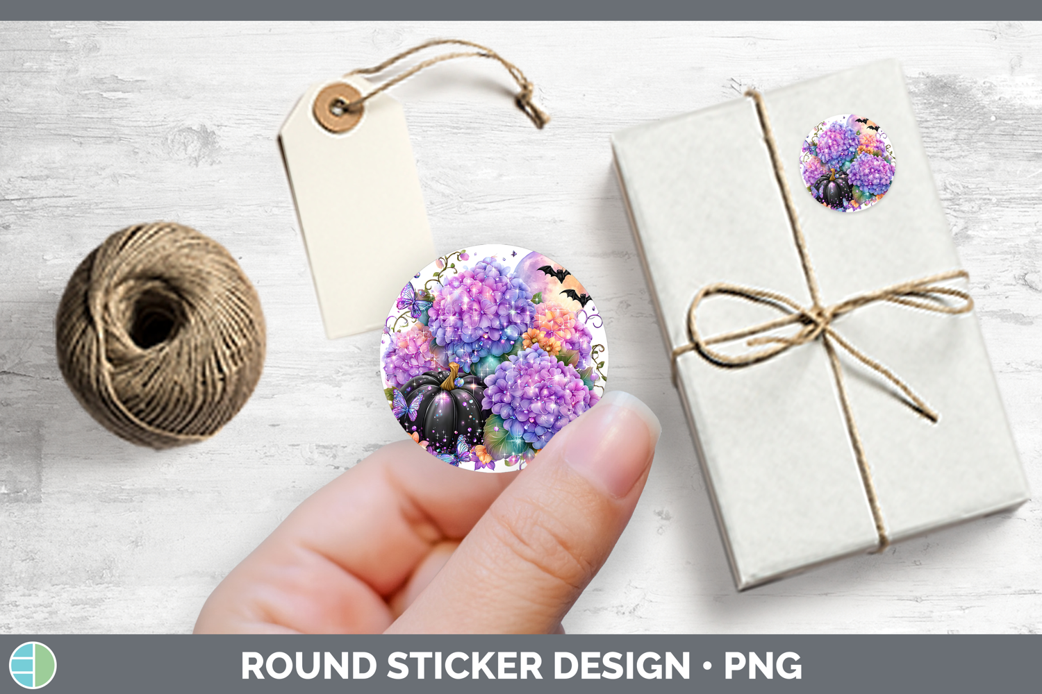 Similar Design Products to Best Sellers 03 Cute Halloween Hydrangea Stickers | Round La