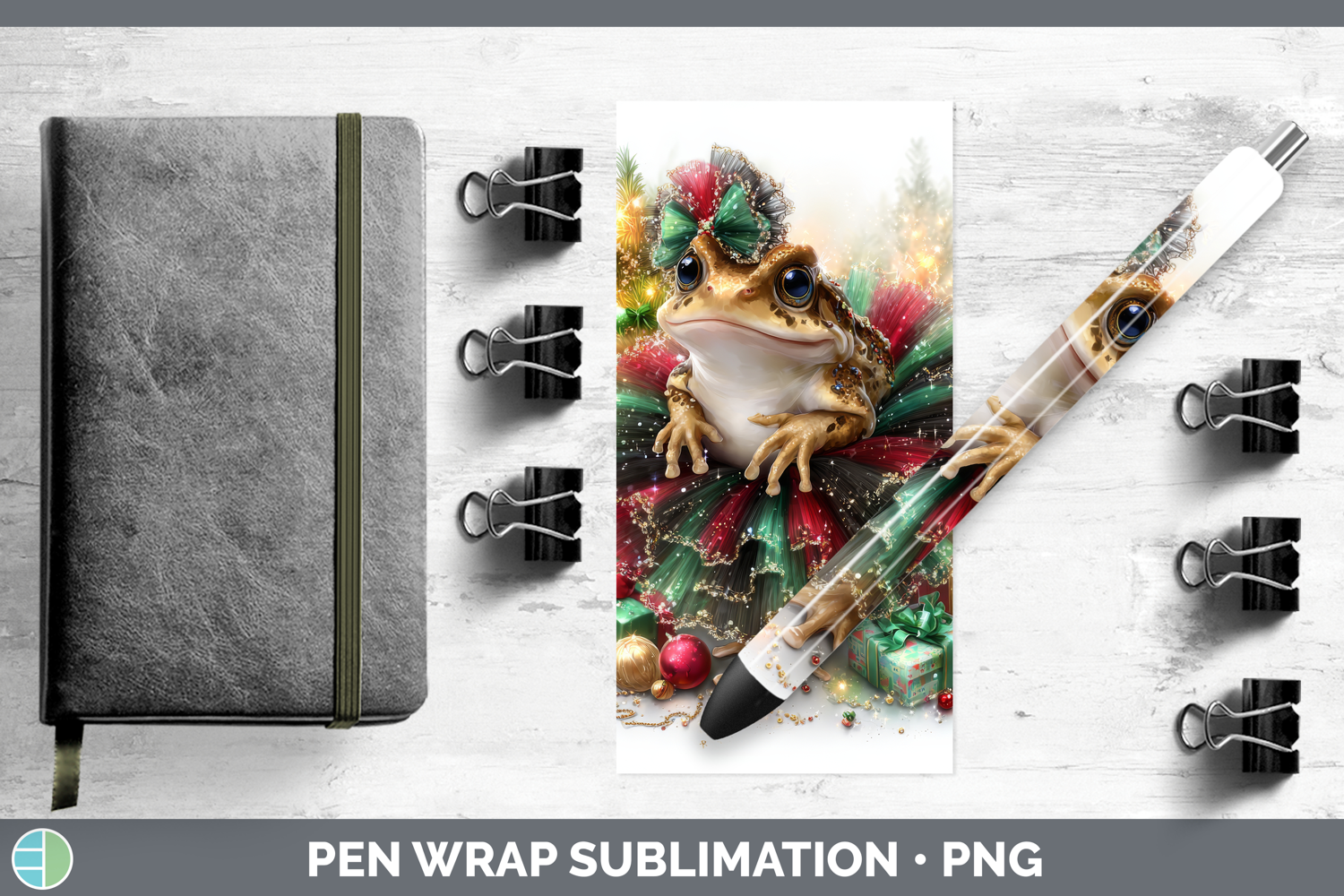 Farm Cute Christmas Bullfrog Pen Wrap Sublimation Pen Design