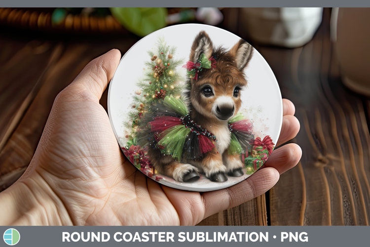 Farm Cute Christmas Mule Round Coaster Sublimation Coaster D