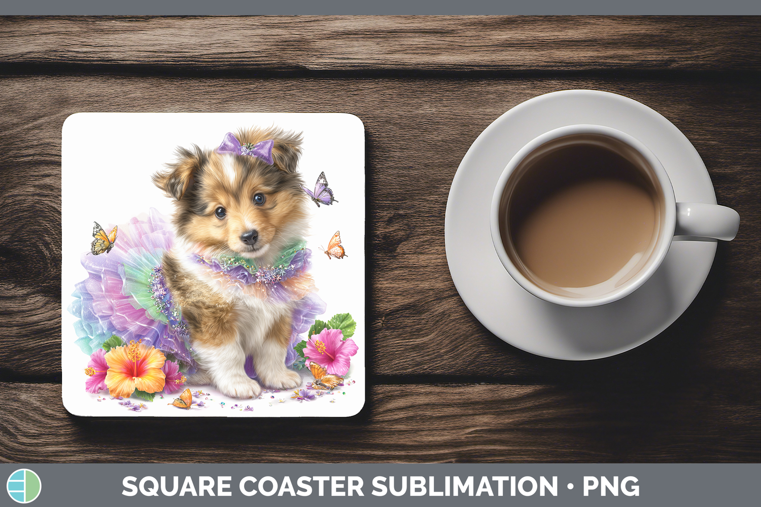 Dogs 04 Rainbow Summer Shetland Sheepdog Square Coaster Subl
