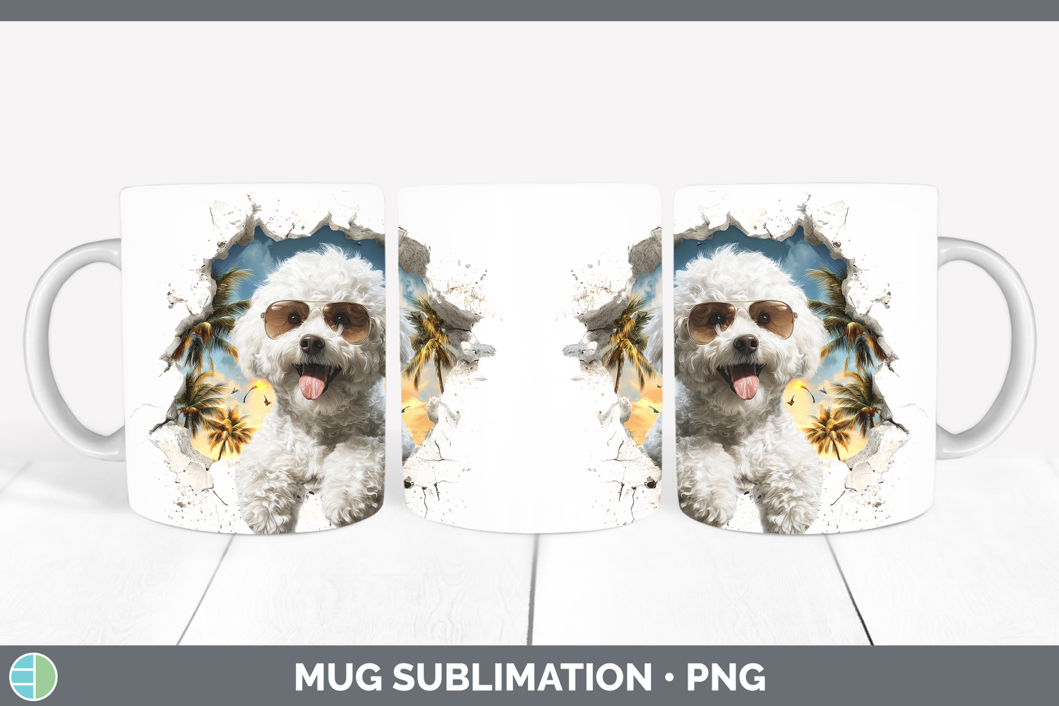Dogs 3D Palm Tree Hole in he Wall Bichon Frise Mug Wrap Subl