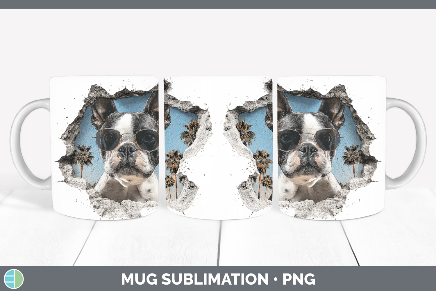 Dogs 3D Palm Tree Hole in he Wall Boston Terrier Mug Wrap Su