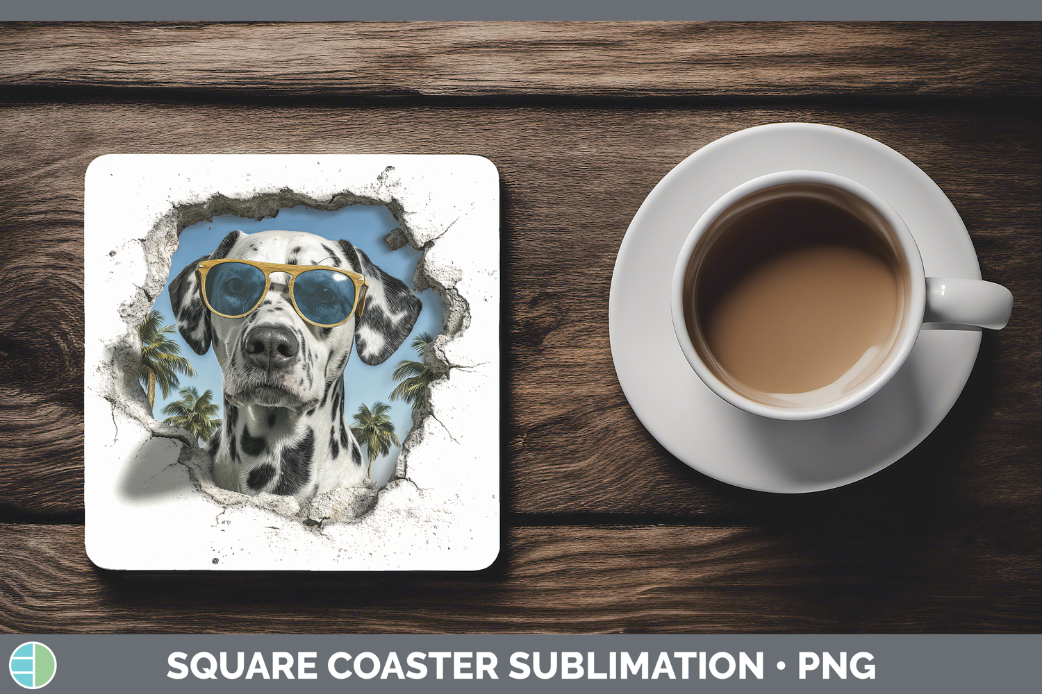 Similar Design Products to Dogs 3D Palm Tree Hole in he Wall Dalmatian Square Coaster S