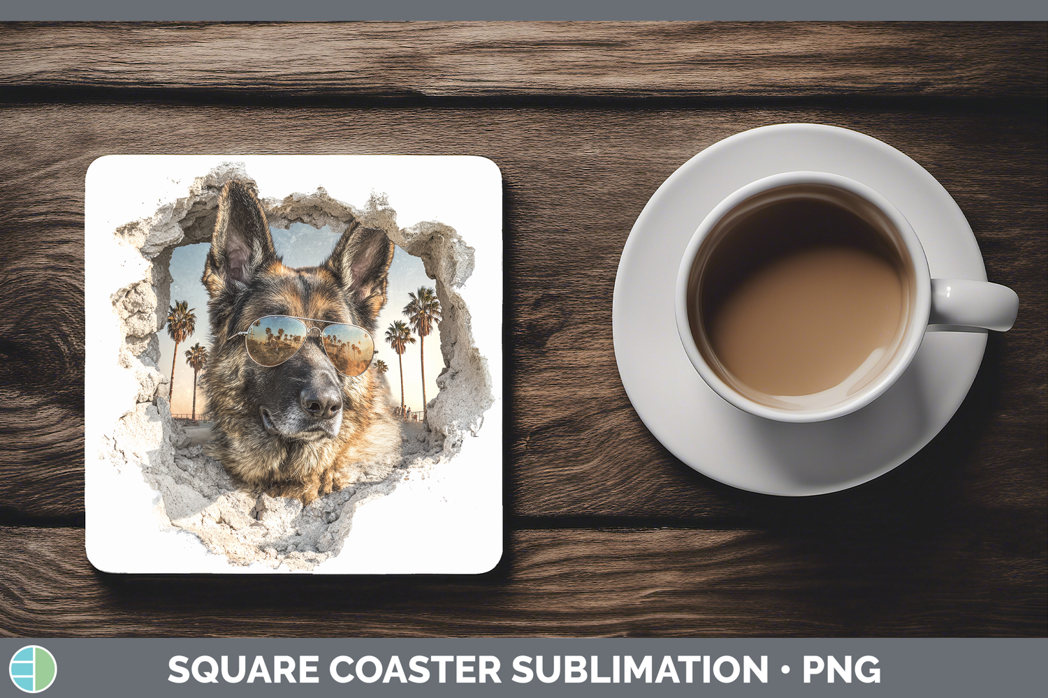 Dogs 3D Palm Tree Hole in he Wall German Shepherd Square Coa