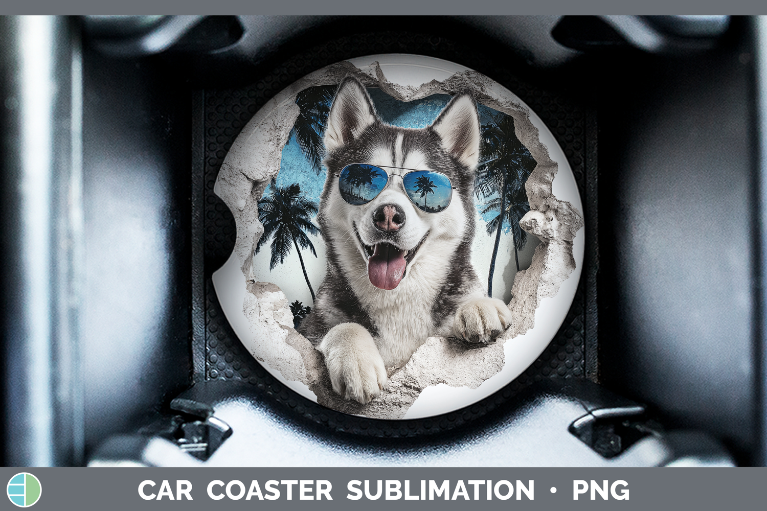 Dogs 3D Palm Tree Hole in he Wall Husky Car Coaster Sublimat