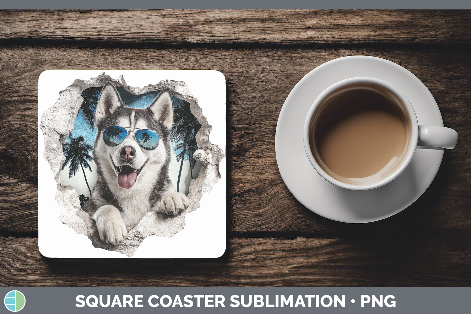 Dogs 3D Palm Tree Hole in he Wall Husky Square Coaster Subli
