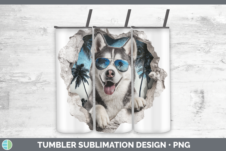 Dogs 3D Palm Tree Hole in he Wall Husky Tumbler Sublimation