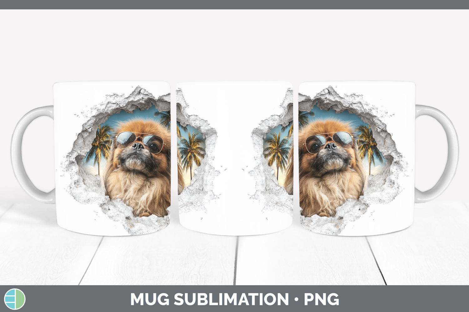 Dogs 3D Palm Tree Hole in he Wall Pekingese Mug Wrap Sublima
