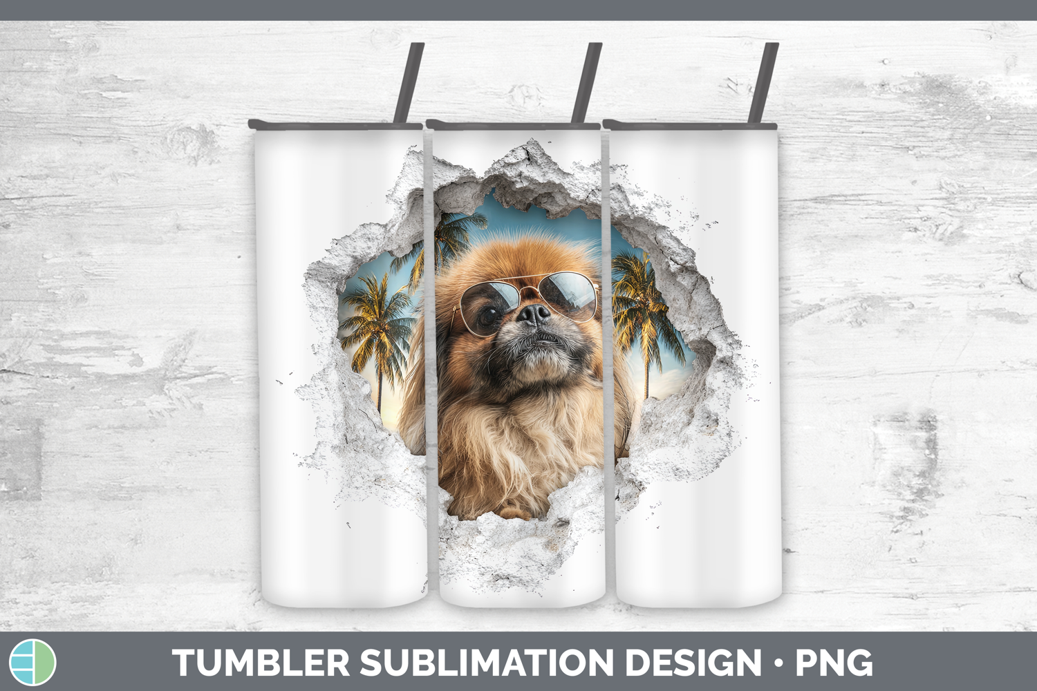 Dogs 3D Palm Tree Hole in he Wall Pekingese Tumbler Sublimat