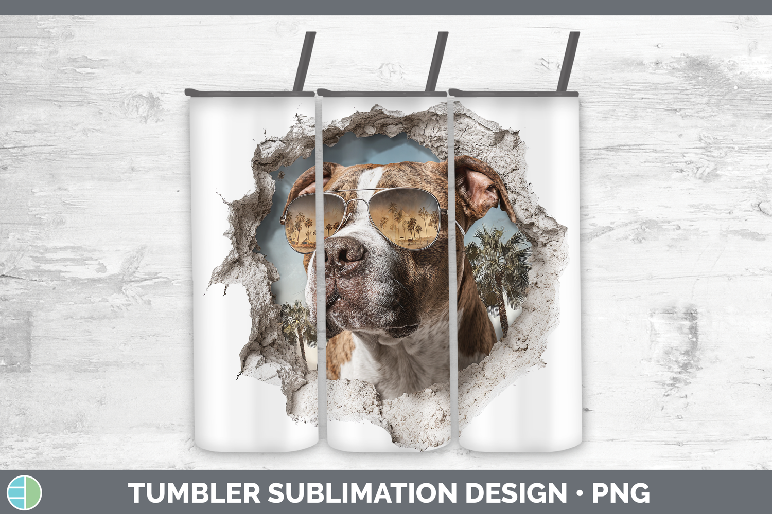 Similar Design Products to Dogs 3D Palm Tree Hole in he Wall Pit Bull Tumbler Sublimati