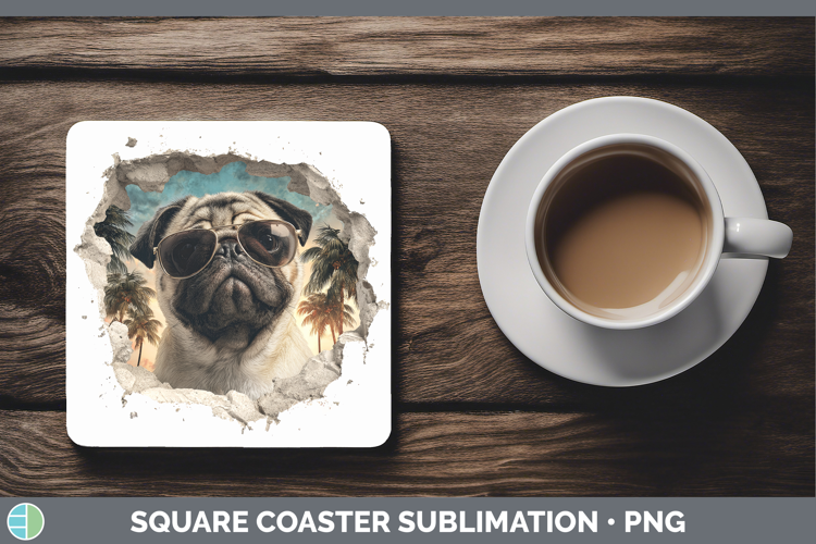 Dogs 3D Palm Tree Hole in he Wall Pug Square Coaster Sublima