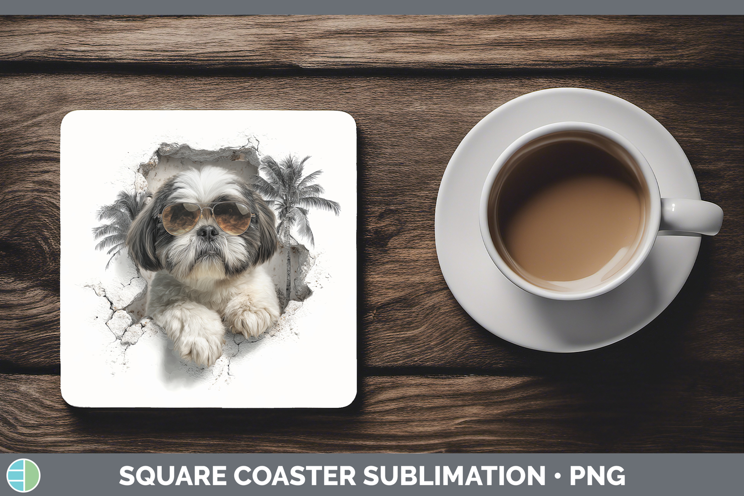 Dogs 3D Palm Tree Hole in he Wall Shih Tzu Square Coaster Su