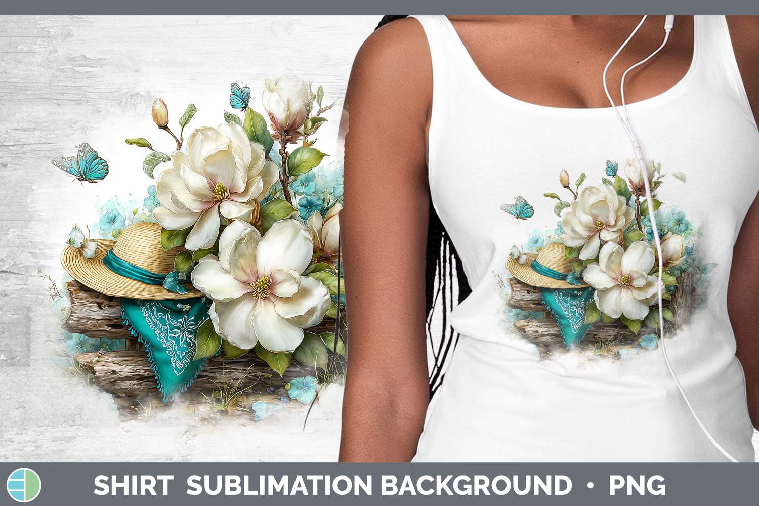 Magnolia Shirt Flowers 02 Bandana Summer Sublimation Backgro