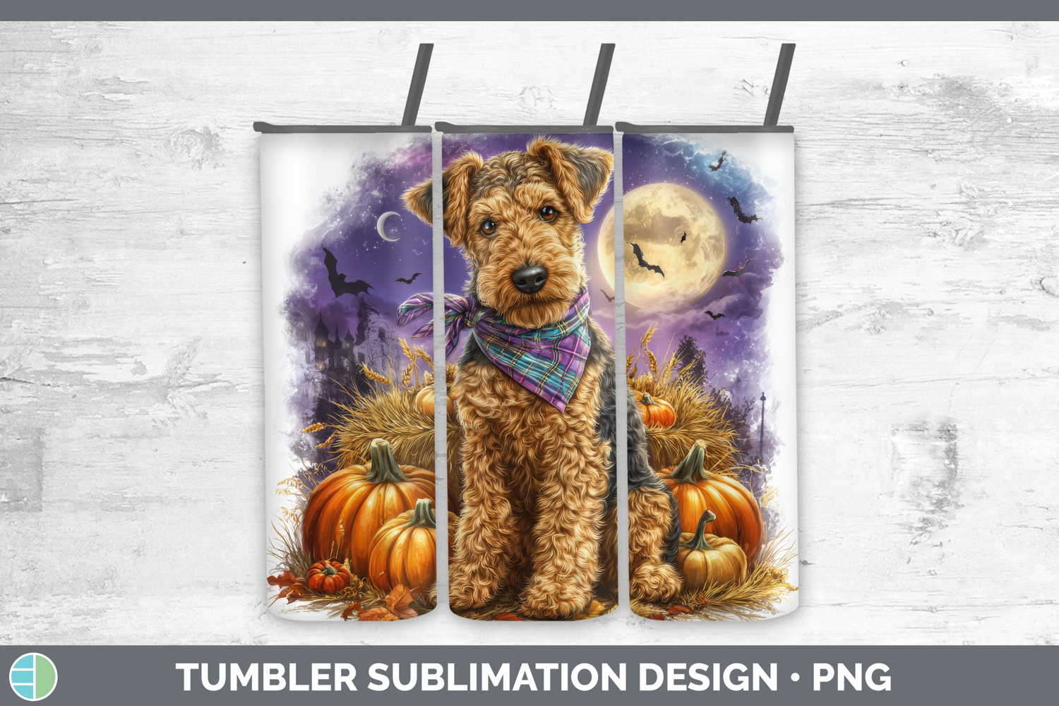 Airedale Terrier Tumbler Dogs 04 Bandana Halloween Sublimati