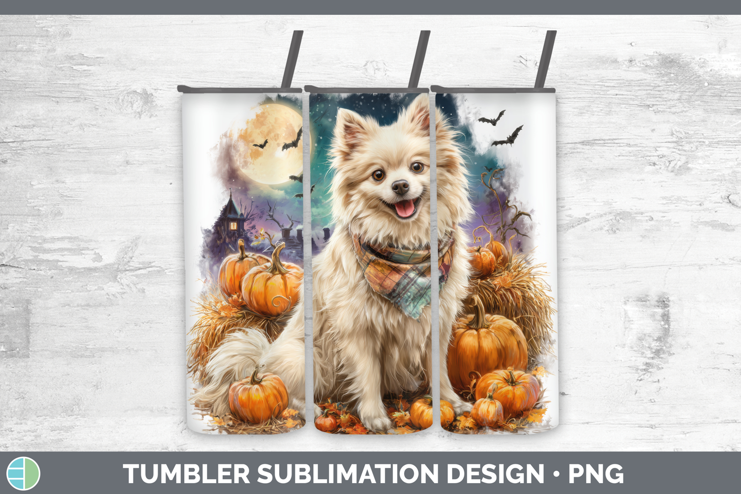 American Eskie Tumbler Dogs 04 Bandana Halloween Sublimation