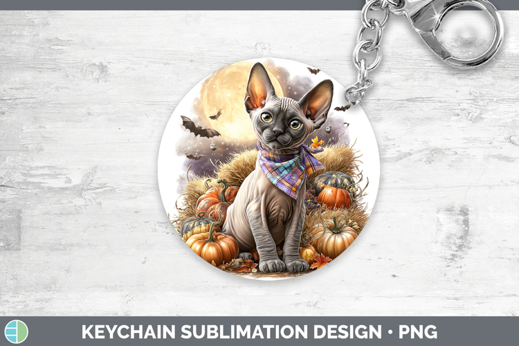 Sphynx Cat Keychain Cats Halloween Bandana Sublimation Keyri