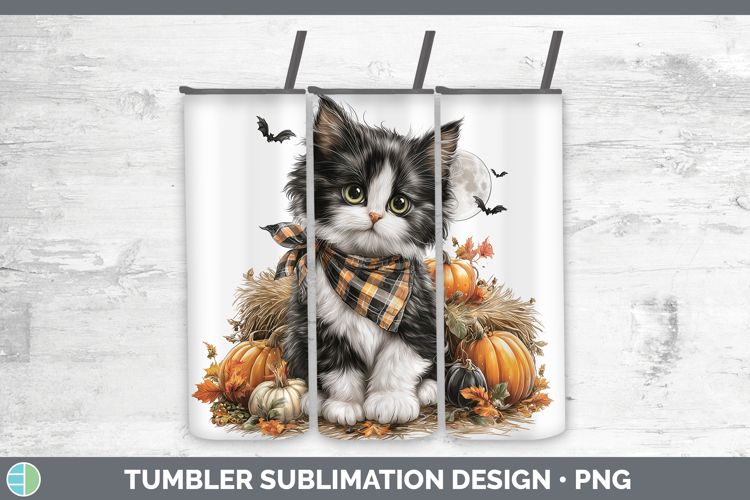 Tuxedo Cat Tumbler Cats Halloween Bandana Sublimation 20 oz