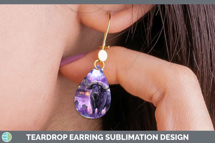 Buffalo Teardrop Earrings Safari Haunted Halloween Sublimati