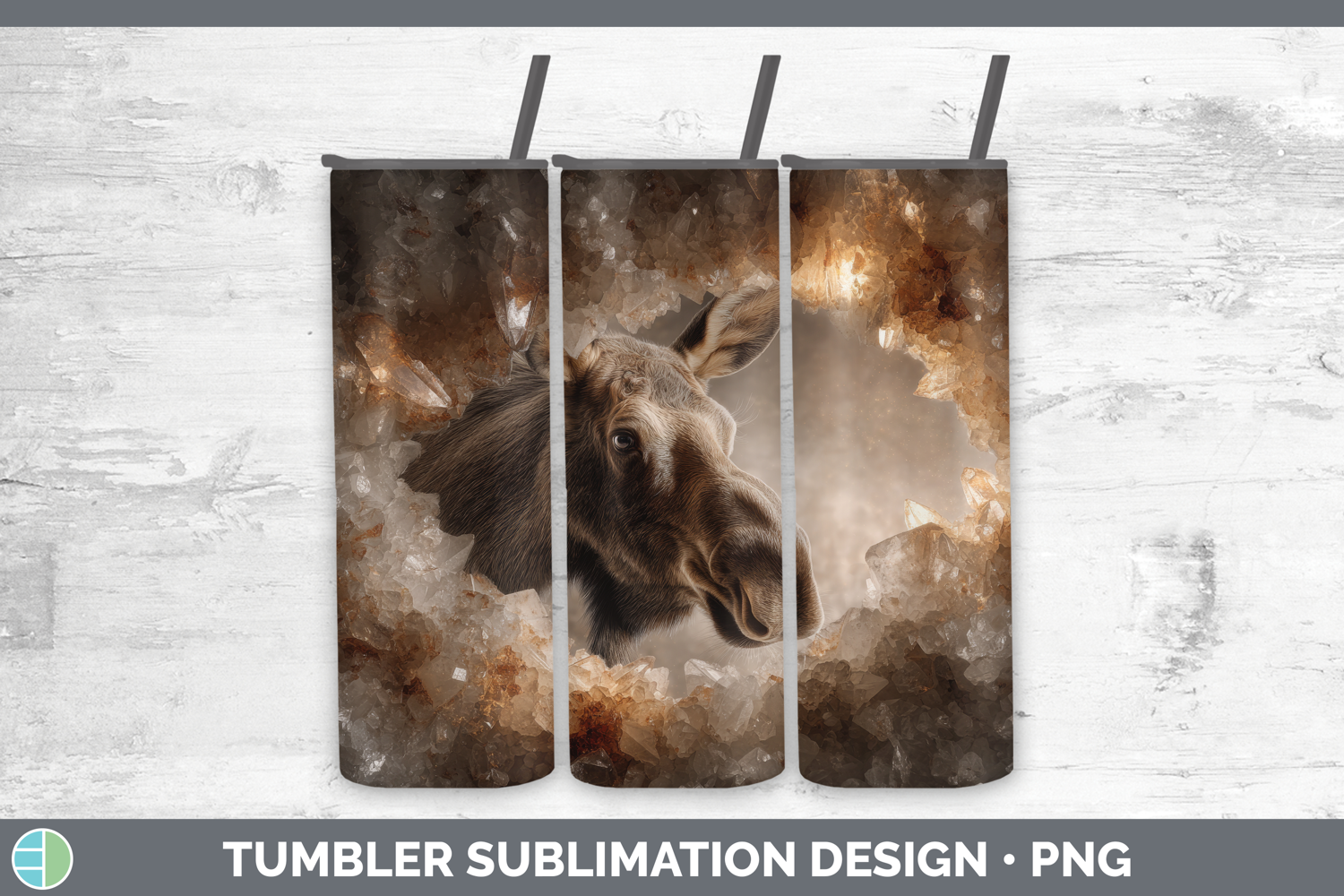Moose Tumbler Animals Geode Wall Sublimation 20 oz Skinny Tu