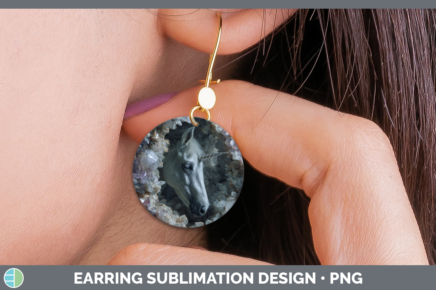 Unicorn Round Earrings Animals Geode Wall Sublimation Earrin
