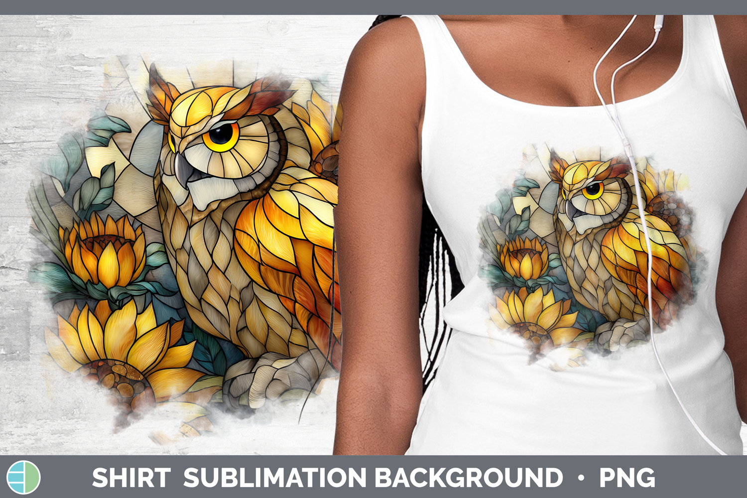 Owl Shirt Birds 01 Stained Glass Sunflower Sublimation Backg