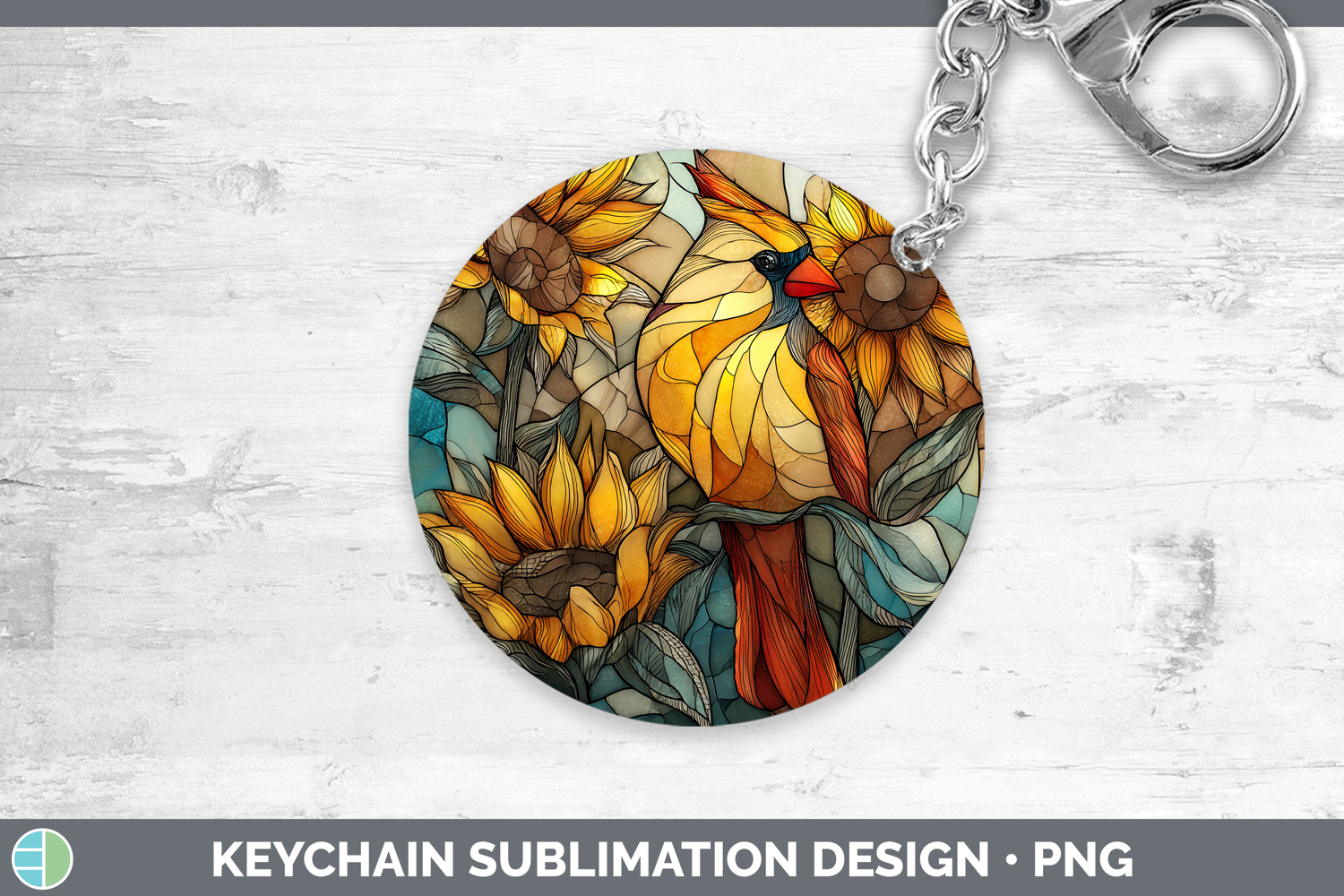 Cardinal Keychain Birds 01 Stained Glass Sunflower Sublimati