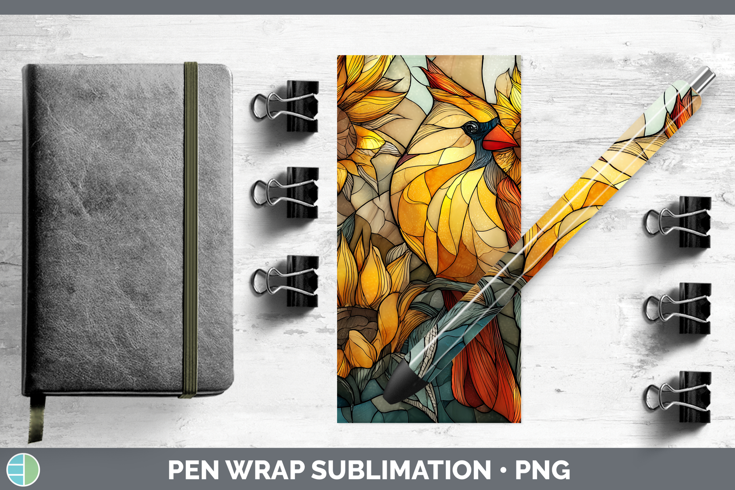 Cardinal Pen Wrap Birds 01 Stained Glass Sunflower Sublimati