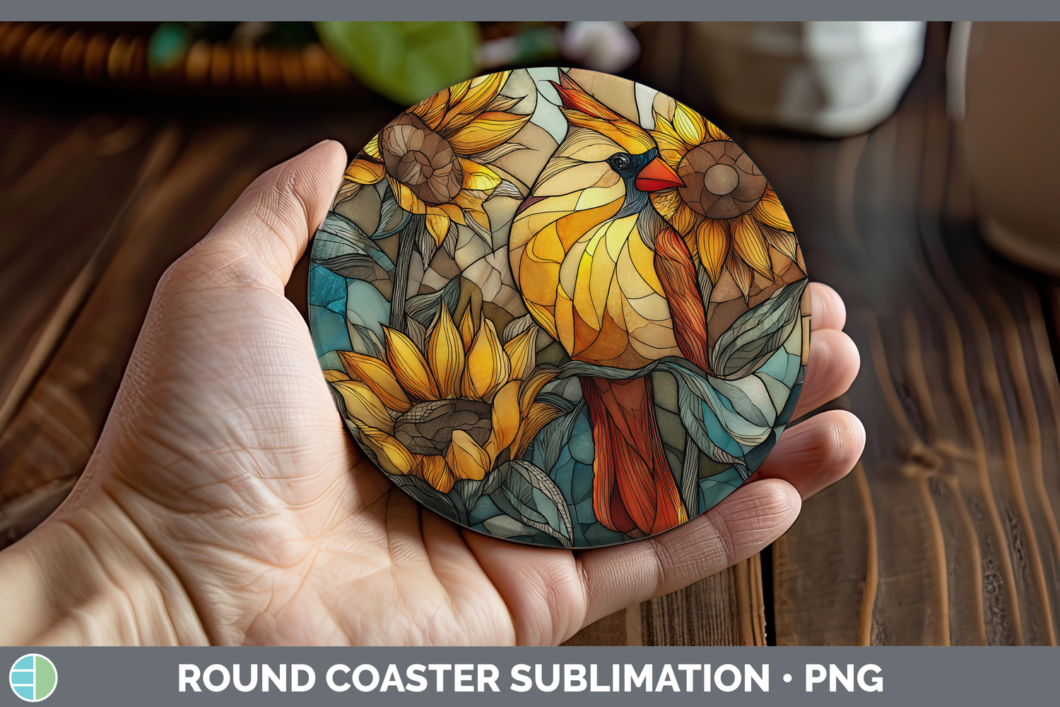 Cardinal Round Coaster Birds 01 Stained Glass Sunflower Subl