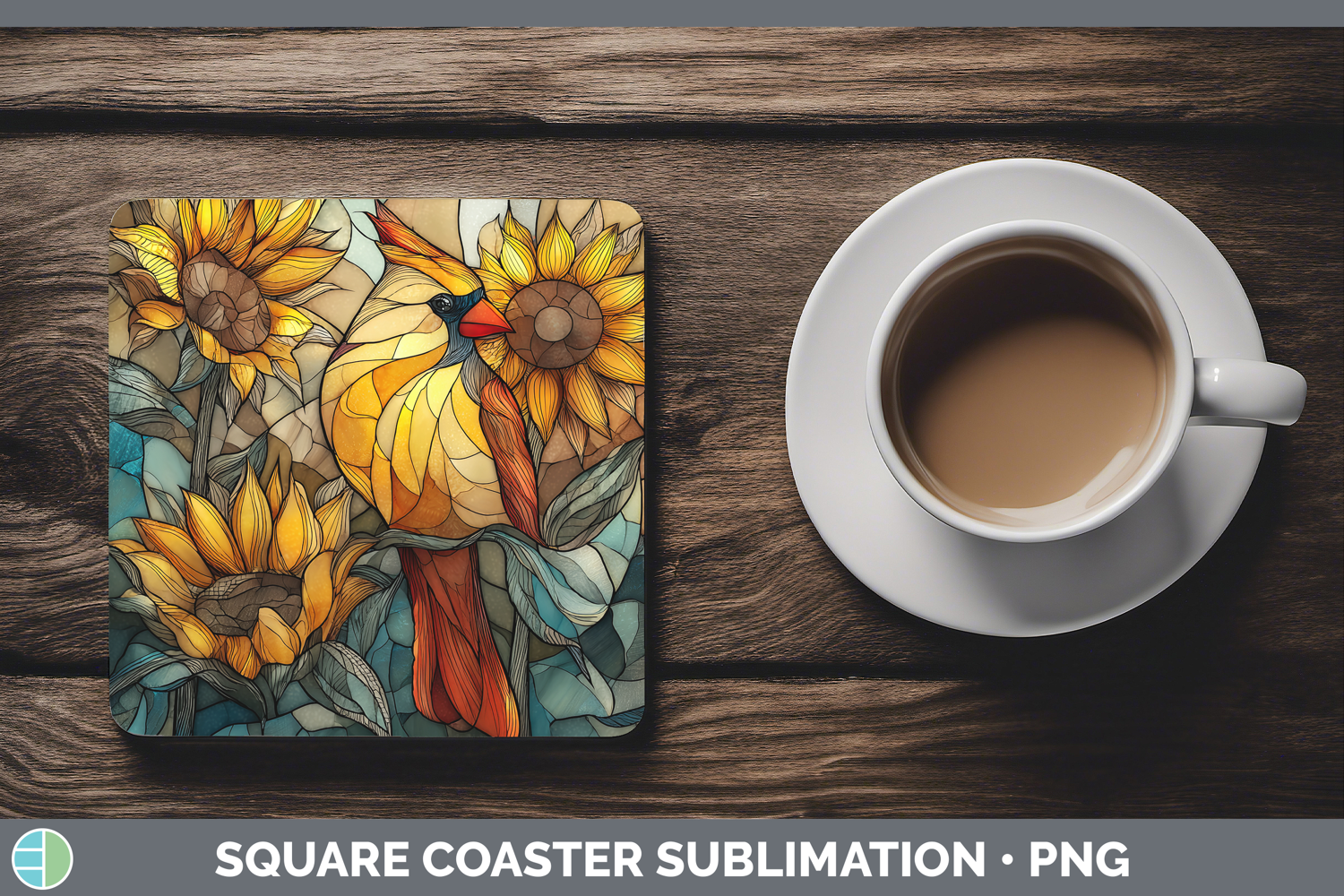 Cardinal Square Coaster Birds 01 Stained Glass Sunflower Sub