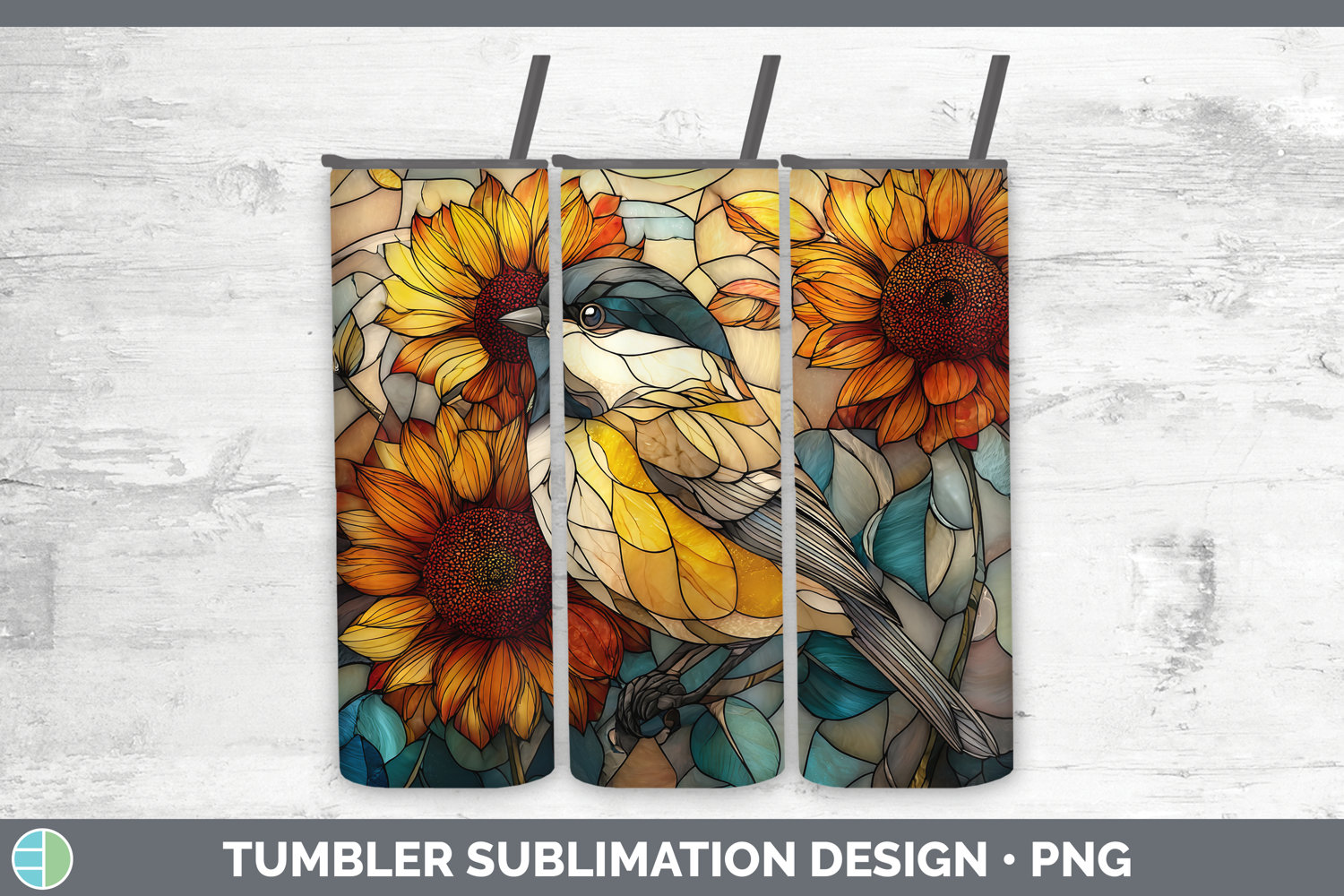 Chickadee Tumbler Birds 01 Stained Glass Sunflower Sublimati